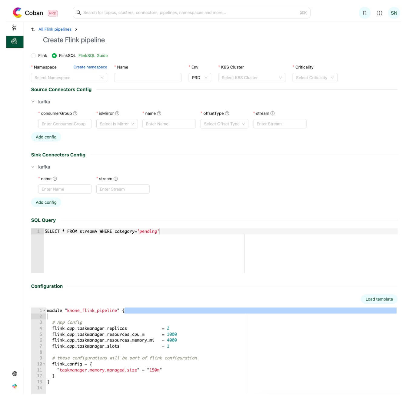 Enabled productionisation: users express stream logic as SQL, configure connectors, set resources, and deploy pipelines in ~10 minutes.