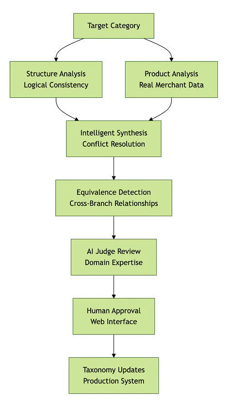 This matters most for emerging product categories. When new product types become popular on the platform, the system can quickly identify taxonomy gaps and propose comprehensive solutions, instead of reactive patches that build up debt.