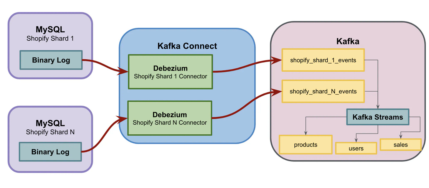 In mid-2019, a cross-functional group at Shopify started testing whether a log-based CDC system could reliably handle the 100+ MySQL shards powering the company’s core monolith. The evaluation included Debezium, Maxwell’s Daemon, Spinal Tap and a homegrown option modeled after Netflix’s DBLog. Among the open-source contenders, Debezium quickly stood out. It was the most active project, backed by responsive maintainers and broad database coverage. That flexibility mattered, since not all of Shopify’s future sources would be MySQL.