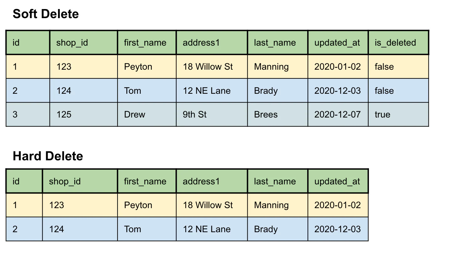 Query-based capture never sees it. Many Shopify tables use soft delete partly to work around this. That keeps data for analytics but it bloats tables and complicates true data removal.