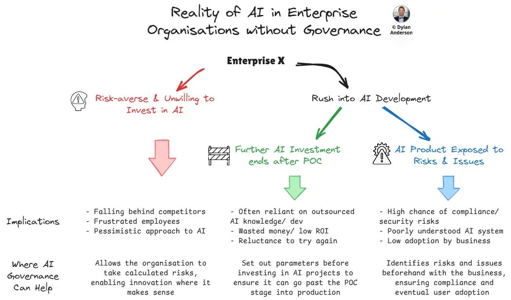 - Evolving from Data to AI Governance (11 minute read) explains that AI governance can’t just copy data governance cause AI moves faster, shifts dynamically and carries higher ethical and regulatory stakes.