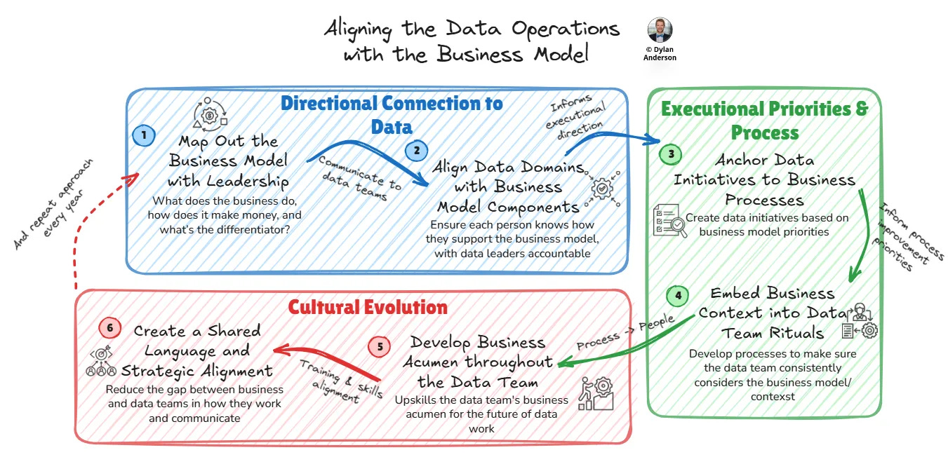 Dylan Anderson makes the case that data teams should start with the business model first, because strategy, architecture, governance and analytics all work better when they are tied to how the company actually creates and captures value.It’s about the strategy, stupid (14 minute read)
